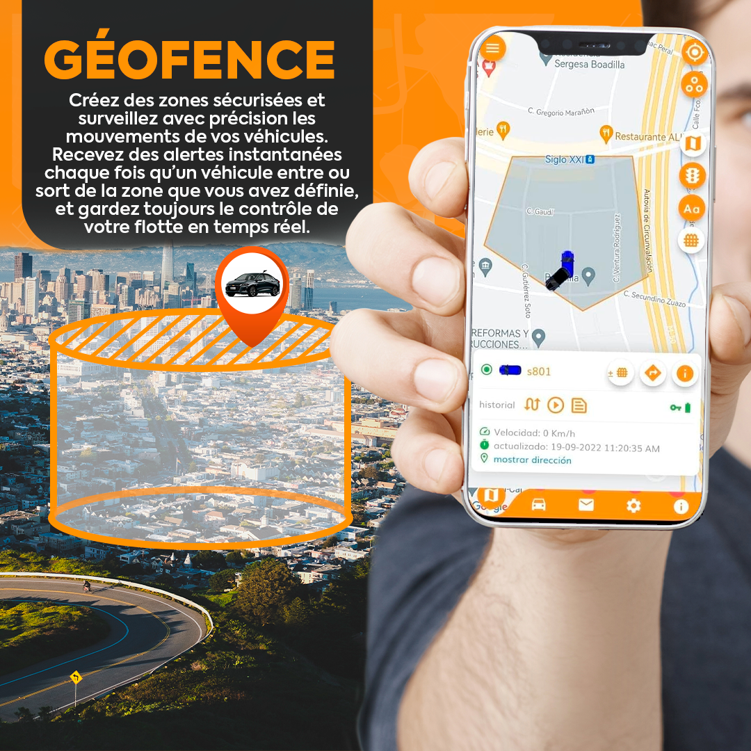 - ALARMES ET CONTRÔLE INTELLIGENT DE L’ITINÉRAIRE : recevez des alertes immédiates en cas d’excès de vitesse, de déplacement non autorisé ou de sortie d’une zone de sécurité. Consultez facilement l’historique des trajets précédents et les emplacements depuis l’application mobile.