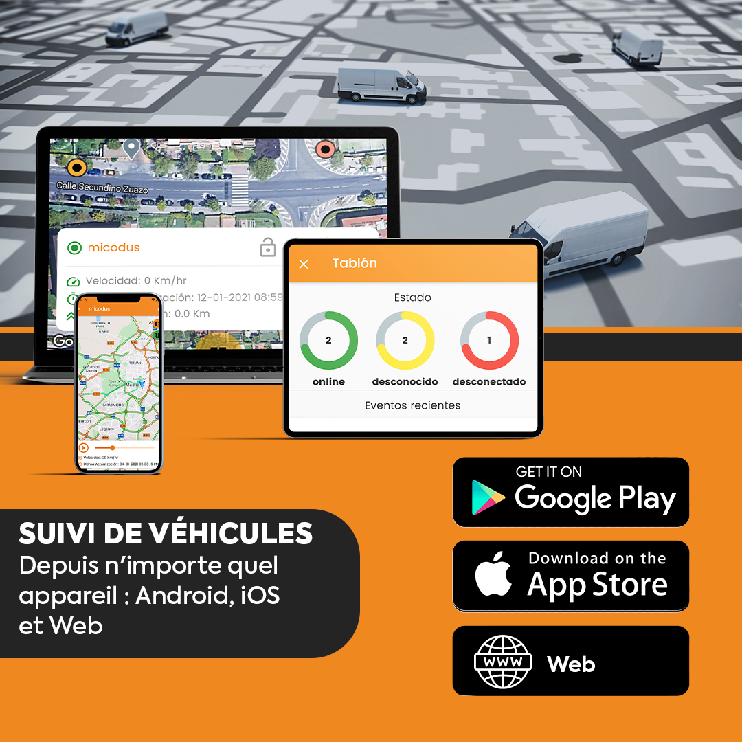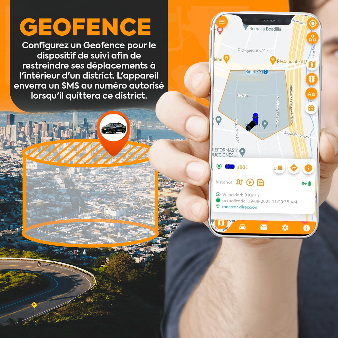 - ALARMES INTELLIGENTES ET GEOLOCATION SECURISEE : recevez des alertes immédiates en cas d’excès de vitesse, de mouvement non autorisé ou de déconnexion. Établit des zones sécurisées (geofencing) pour contrôler les entrées et sorties de véhicules en temps réel.