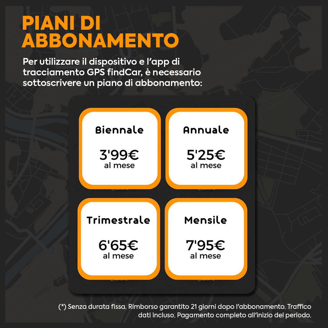 - TRACCIABILITÀ IN TEMPO REALE: il localizzatore GPS FindCar ti permette di seguire la posizione del tuo veicolo in tempo reale dall’app mobile. Ideale per auto, moto, furgoni o flotte. Connessione stabile ed efficiente per un monitoraggio continuo.